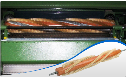 The above cards are not having with the flat cleaning system for cleaning the micro dust, which result in accumulation of micro dust and seed particles in flat tops. We provide complete system of flat clearer attachment which will help to keep the flats clean from micro dust and seed coats throughout its working time ensuring uniform quality of the output from the cards. This helps in achieving consistent NEP removal efficiency for the output given by the cards. Moreover usage of compressed air to clean the flat and the man power for doing it is also saved by this conversion. This is applicable for the cards which are processing 100% Polyester and blends also. The Deposition of Titanium Di-Oxide on the flats is removed by this drive arrangement and achieves consistent NEP removal efficiency.